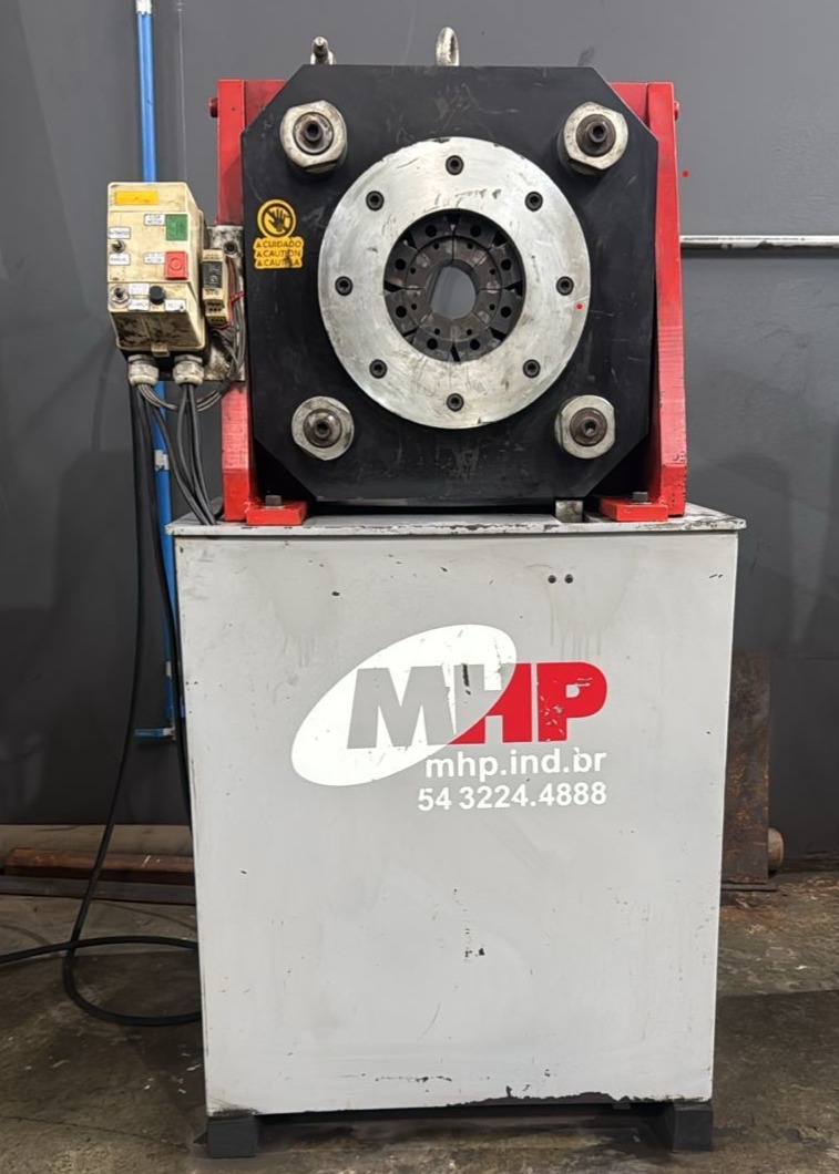 - Prensa de grande porte: até 4”, compatível com mangueiras de 4 tramas de aço e até 1 ½” com 6 tramas de aço.