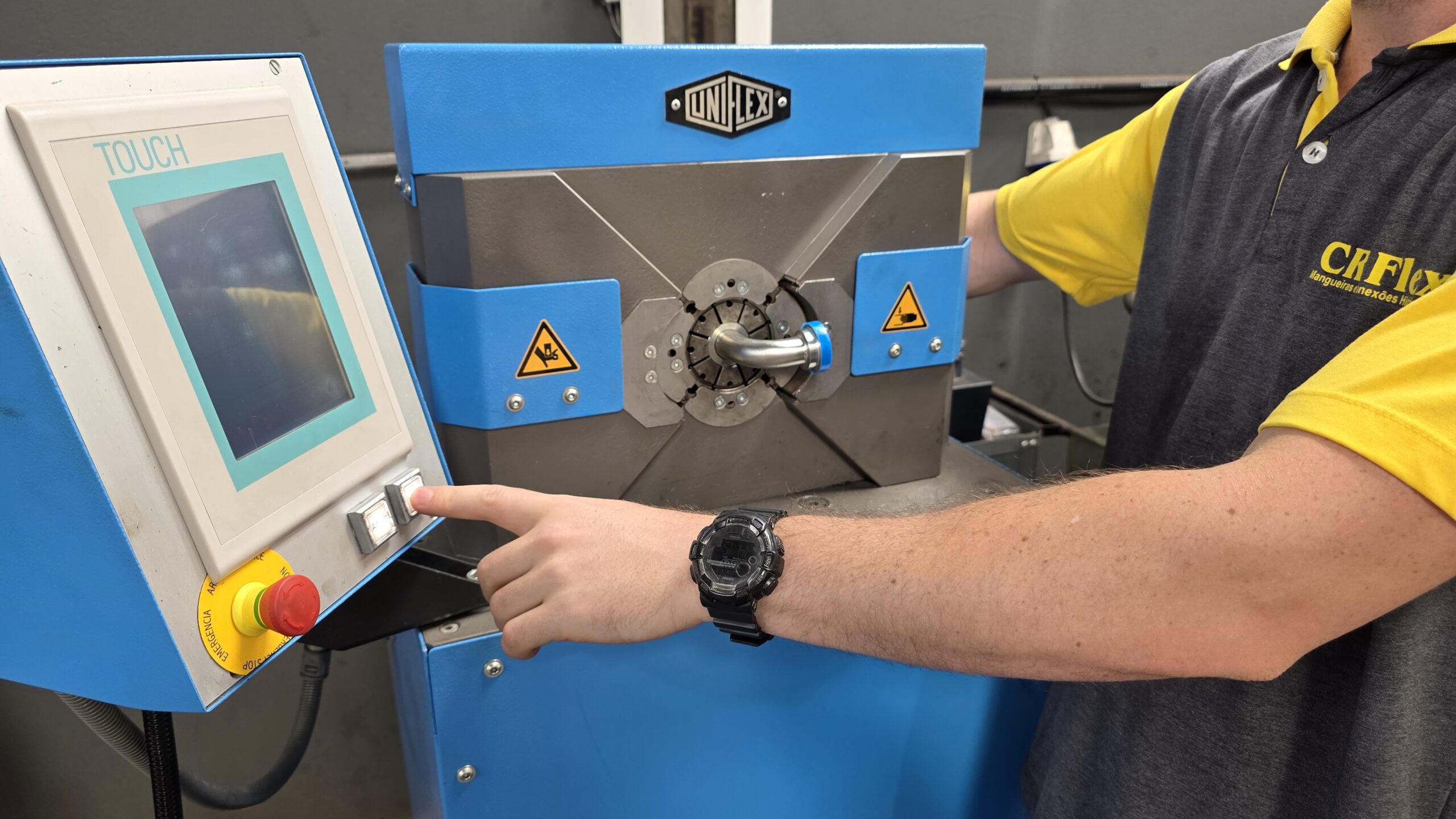 A CR Flex conta com estrutura completa para montagem e prensagem de mangueiras hidráulicas sob medida, atendendo aplicações de alta, média e baixa pressão.